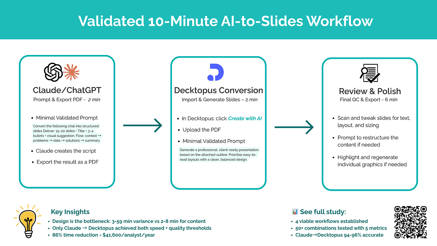 Validated 10-Minute AI-to-Slides Workflow