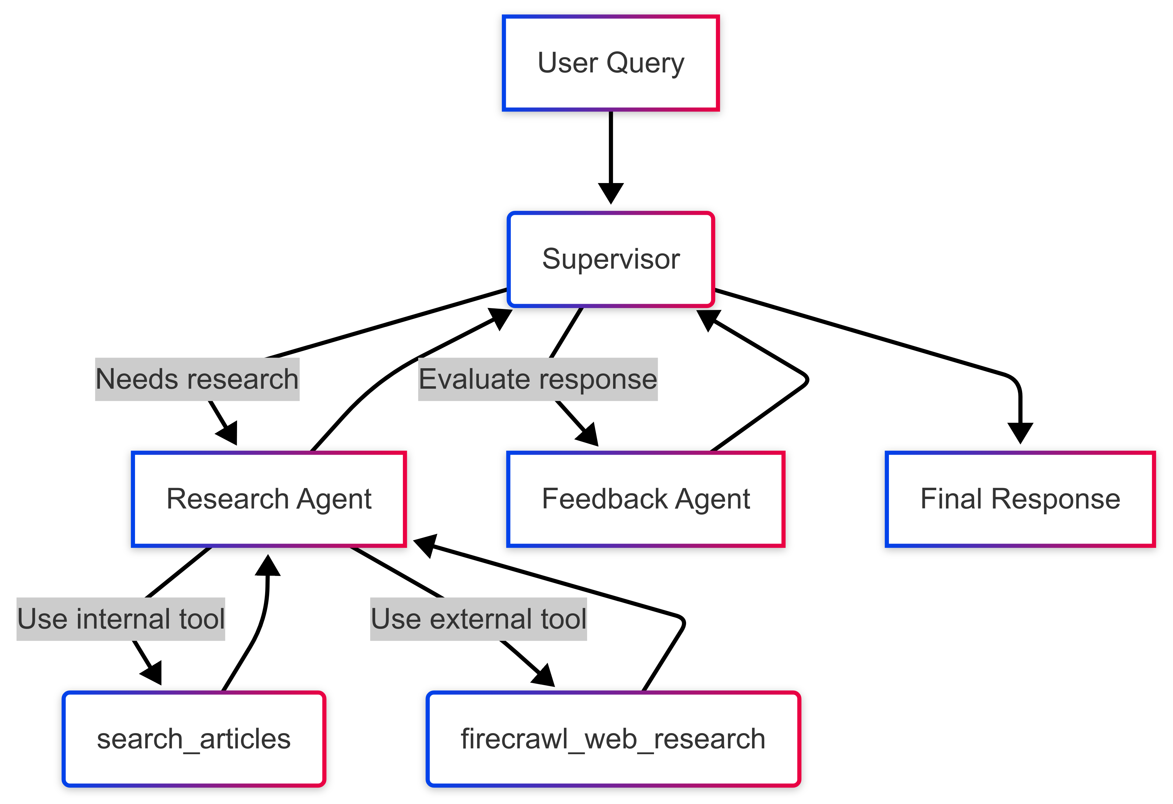 .Feedback Agent: A ReAct agent with no tools. Its sole purpose is to receive a generated response and critique it based on its prompt.