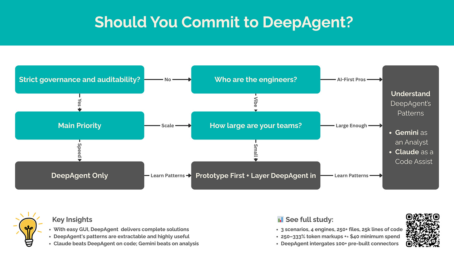 The Validated Reality: DeepAgent isn't selling performance or patterns—it's selling completeness. Whether that's worth the 20x markup in costs versus additional development time depends entirely on your constraints: