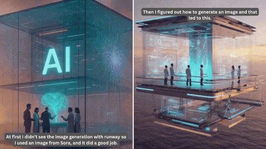 When I first tried to generate an image using Runway I didn’t see how to do it, so I used an image from Sora as the reference for generating the video.