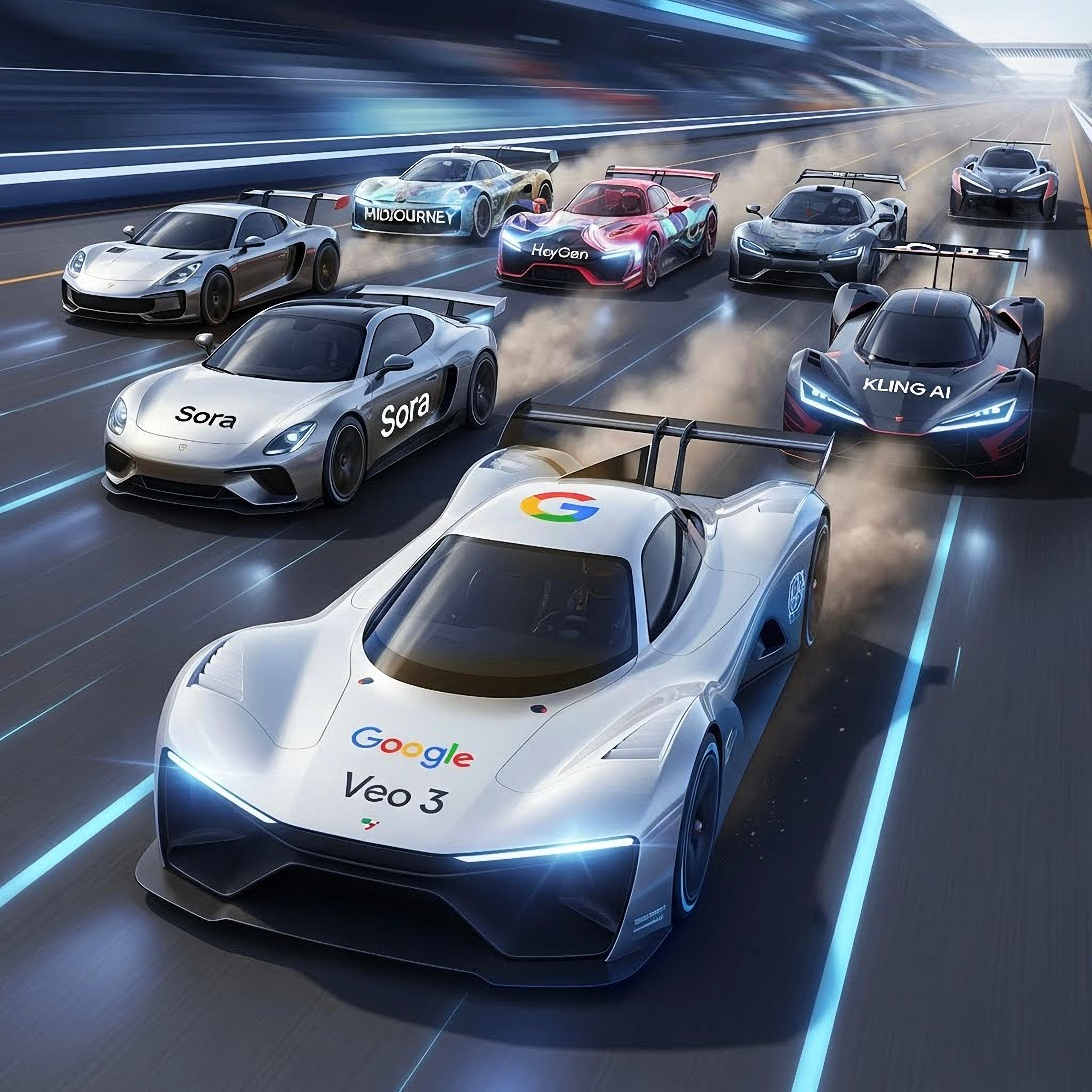 After running the image prompts and using those to generate the video’s it was clear who the winner was. Because I wanted Veo 3 to be able to bask in the glory of its victory I decided to reward it with the opportunity to flex on all of the competitors by adding conversation to the video generation prompt.
