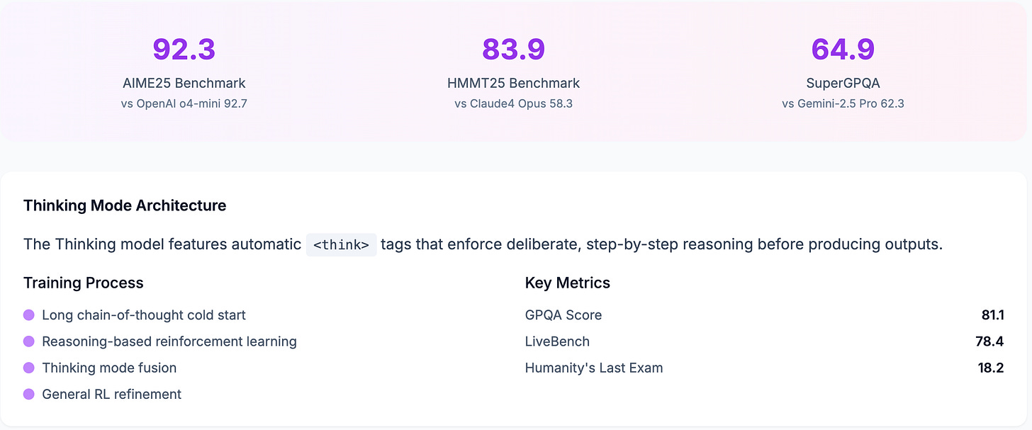 Splitting Personalities (On Purpose): The move to create separate Thinking and Instruct models is genius. Instead of a clunky toggle, you pick the right tool for the job. Need a quick answer? Use Instruct. Need to solve a complex math problem? Unleash the Thinker.