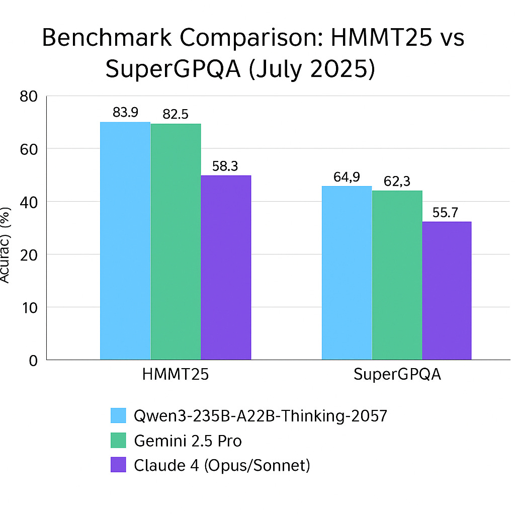 Qwen3-Thinking, The Mathlete: This model is acing tests that make other AIs sweat. On the AIME25 math and logic exam, it scored 92.3, essentially tying with OpenAI's o4-mini (92.7) and beating Gemini-2.5 Pro (88.0). It's the open-source math nerd we've been waiting for. There are another couple of important benchmarks (SuperGPQA and HMMT25) where this Qwen model beats Gemini 2.5 Pro and Claude 4 Opus & Sonnet. I’ll call them out here so we can compare the pricing between these models next: