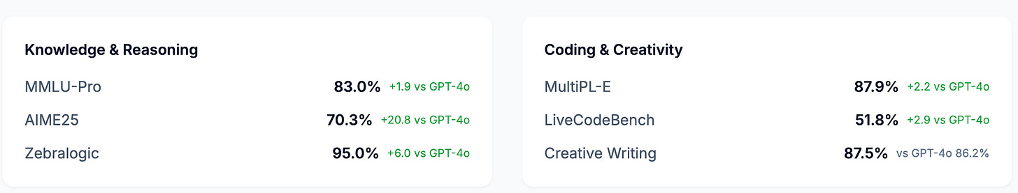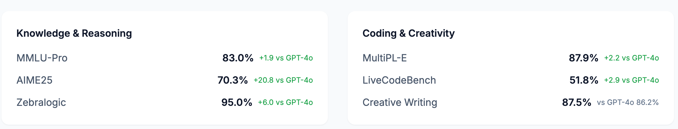 Qwen3-Instruct, The All-Rounder: The generalist model holds its own, too. On knowledge benchmarks like MMLU-Pro, it scores 83.0%, beating GPT-4o's 81.1%. It proves you don't need to sacrifice general smarts for speed.