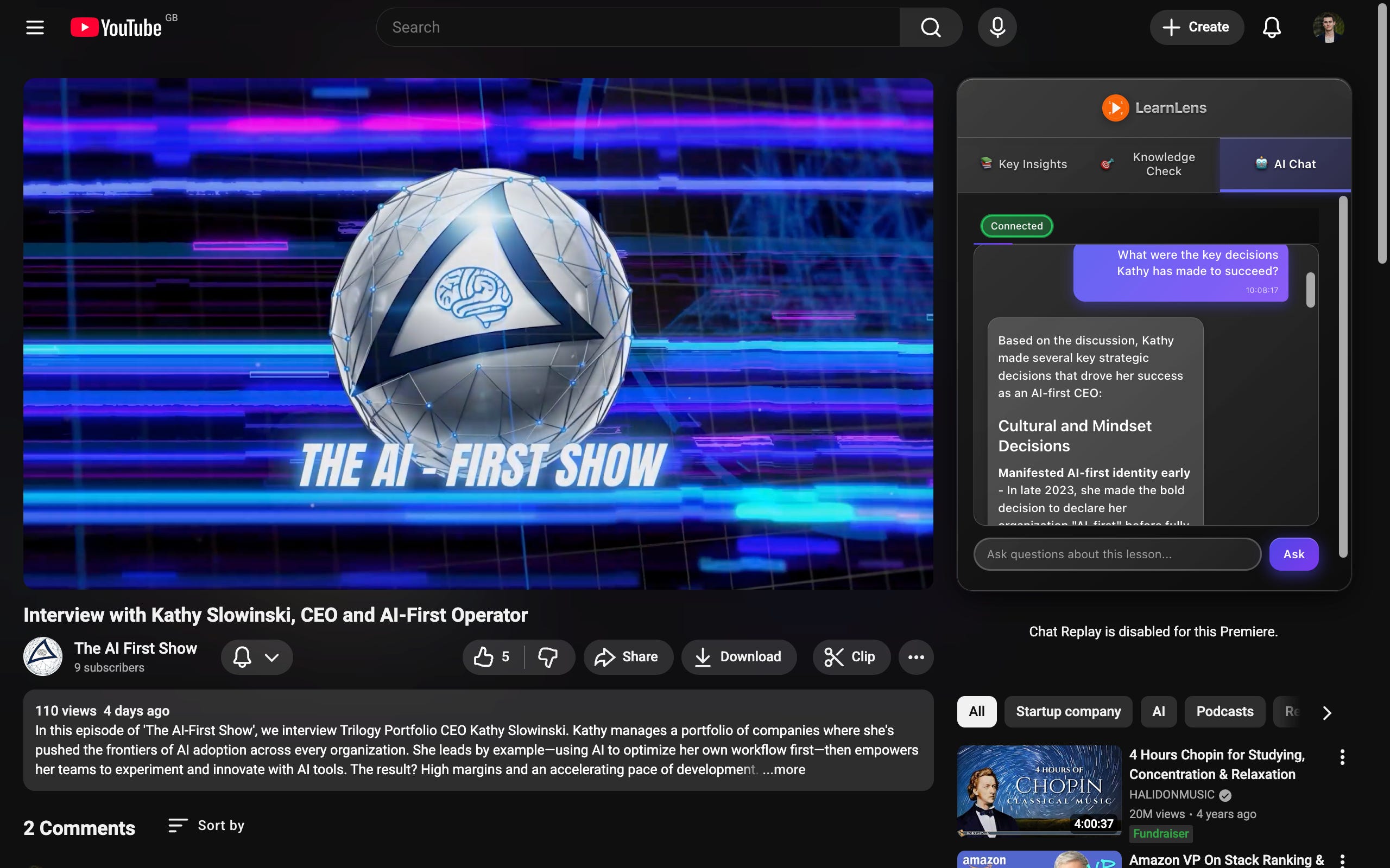 Watch the complete Kathy Slowinski interview on The AI-First Show for a masterclass in AI transformation. With LearnLens active, you’ll extract every framework, every insight, every strategic principle.
