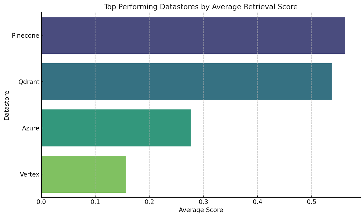 Pinecone and Qdrant are the top performers by a significant margin.