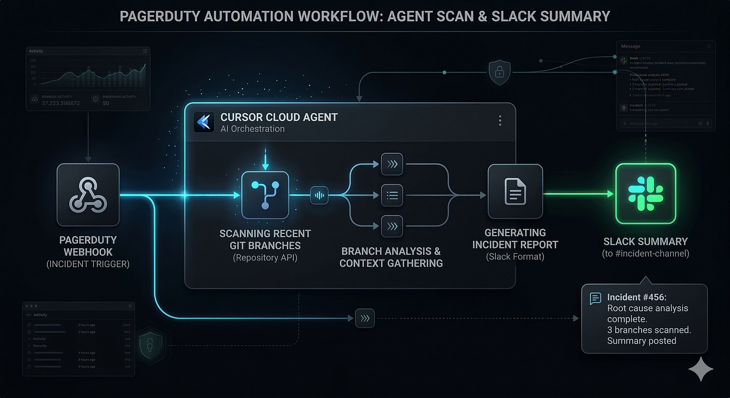 Incident Response (Webhooks): Instead of waking up to blindly debug a critical failure at 3 AM, set an Automation triggered by a PagerDuty incident webhook. Before you even open your laptop, the Cloud Agent automatically clones the repo, reviews the last six merged branches, and attempts to isolate the root cause of the SEV-1 in production.